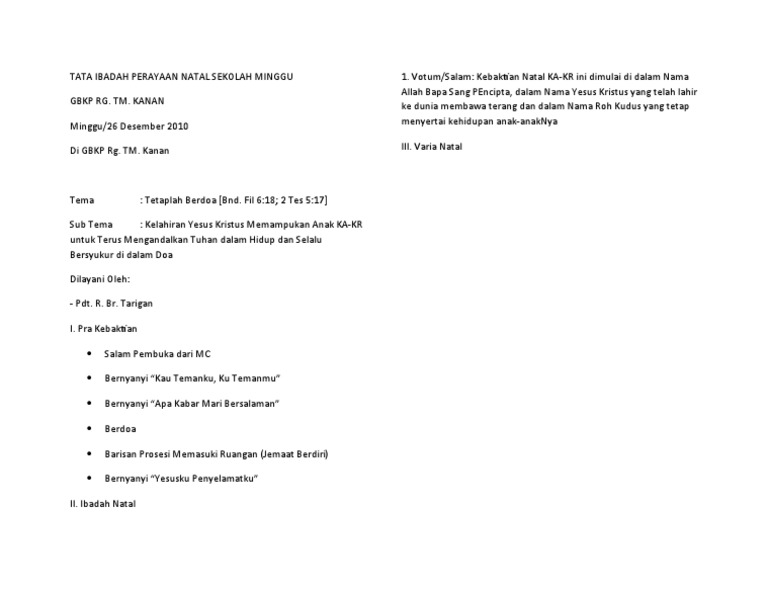 Tertib Acara from imgv2-1-f.scribdassets.com Ibu novi & kak eva firman tuhan : Video tarian natal ini dibuat untuk mengisi acara perayaan natal sekolah minggu gkj wonosobo timur tahun 2020 secara. Lagu natal sekolah minggu disatukan oleh yesus. Sambutan ketua perayaan natal ibu claudia youtube. Raja yosia sudah mendengar isi firman tuhan yang ditulis di kitab taurat. Posted on may 29 2011. Hkbp pondok gede perayaan natal sekolah minggu. Kiranya susunan acara ini dapat menjadi contoh bagi kita semua.